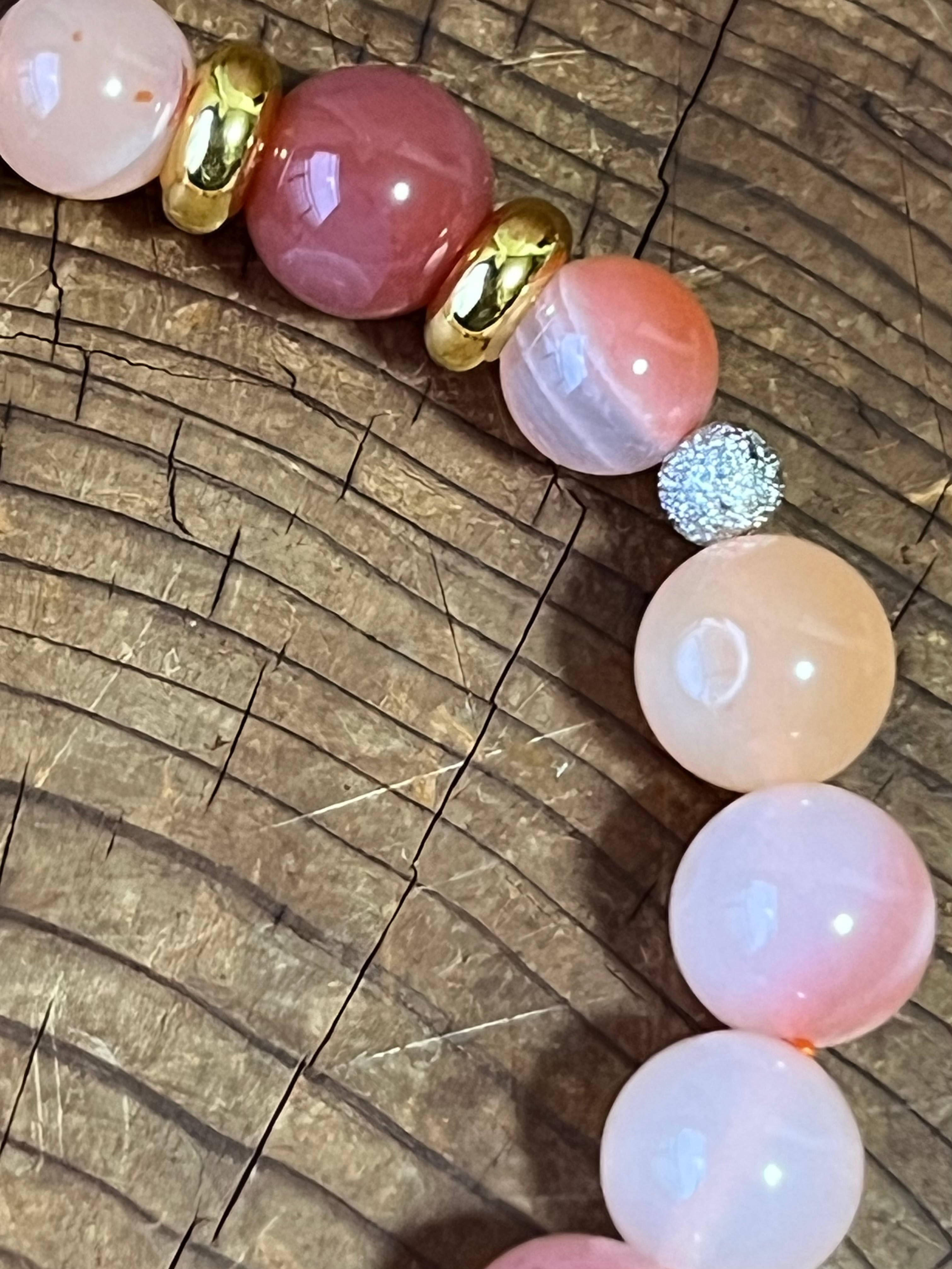 優しいピンクオレンジの色合いとホワイトタイプの塩原瑪瑙
