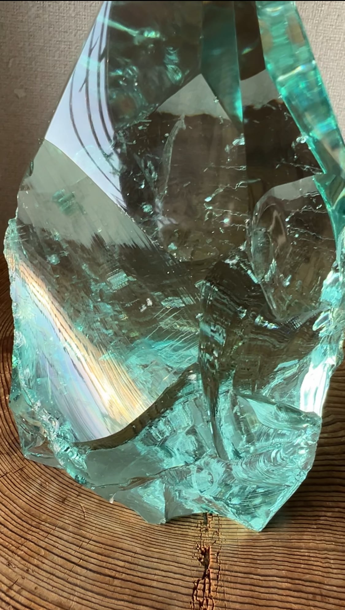 色合いは淡いブルーから深い青緑色まであり、気泡を多く含むものや、小石や破片を内包するものもあります。