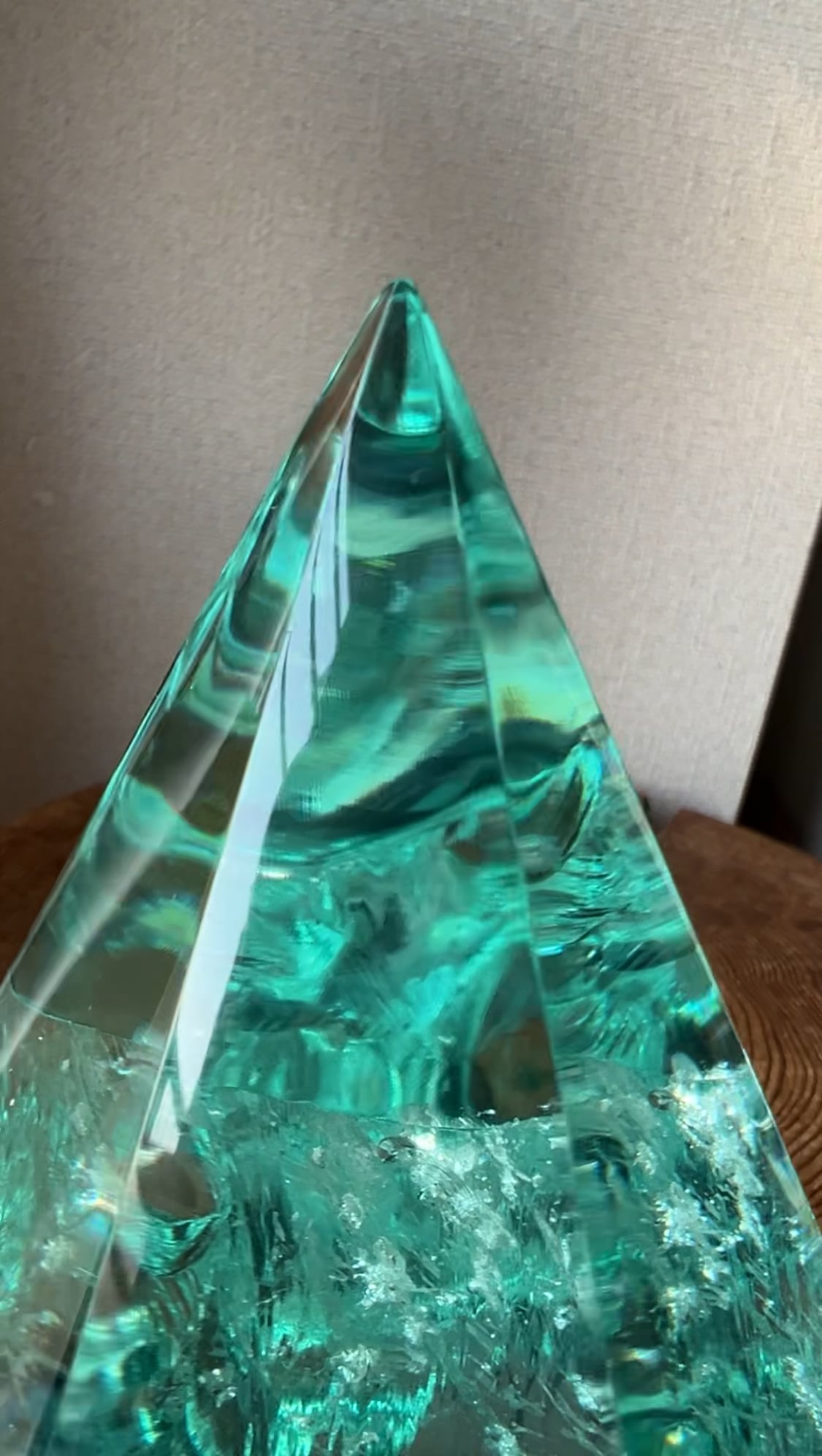 このような背景から、スマトラ産の神秘的な素材「アクア・レムリア」に注目が集まります。エネルギー的には、レムリアと呼ばれるエネルギーに非常に近く、その色は熱帯太平洋の柔らかく甘い水を思い起こさせ、夢・精神・魔法の水の領域を反映しています。