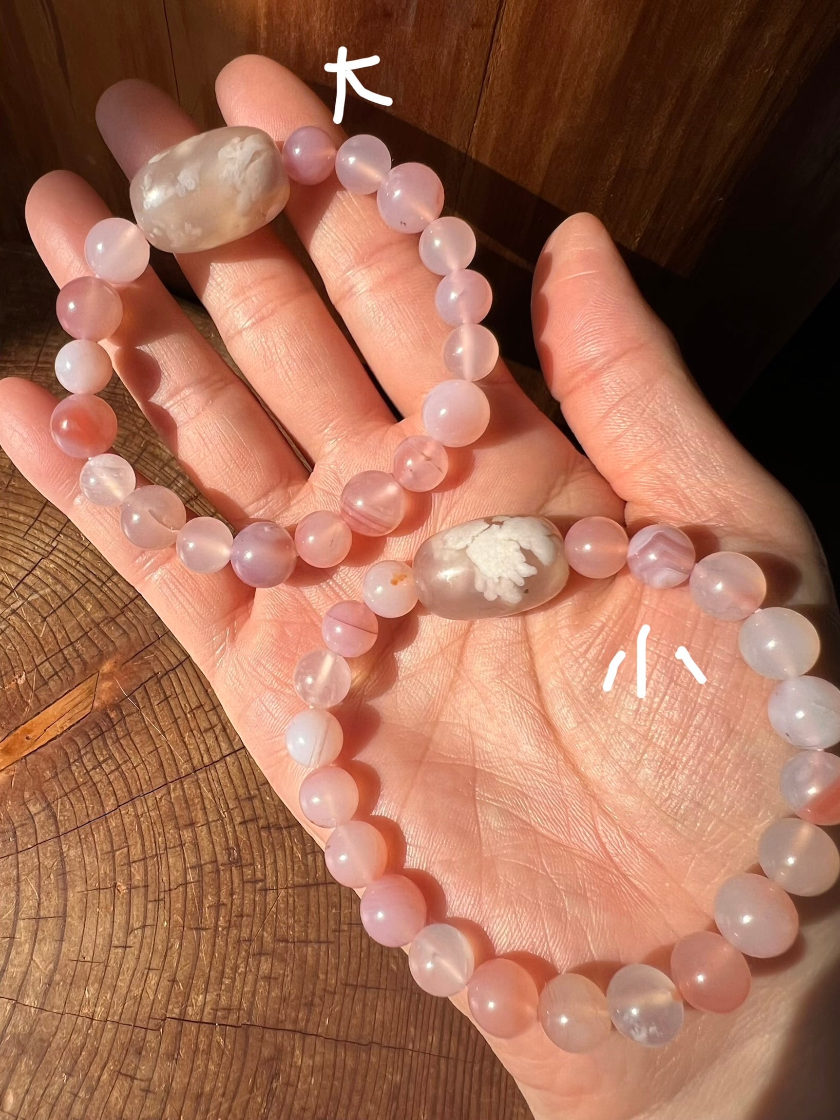 優しい大きな桜瑪瑙のビーズに