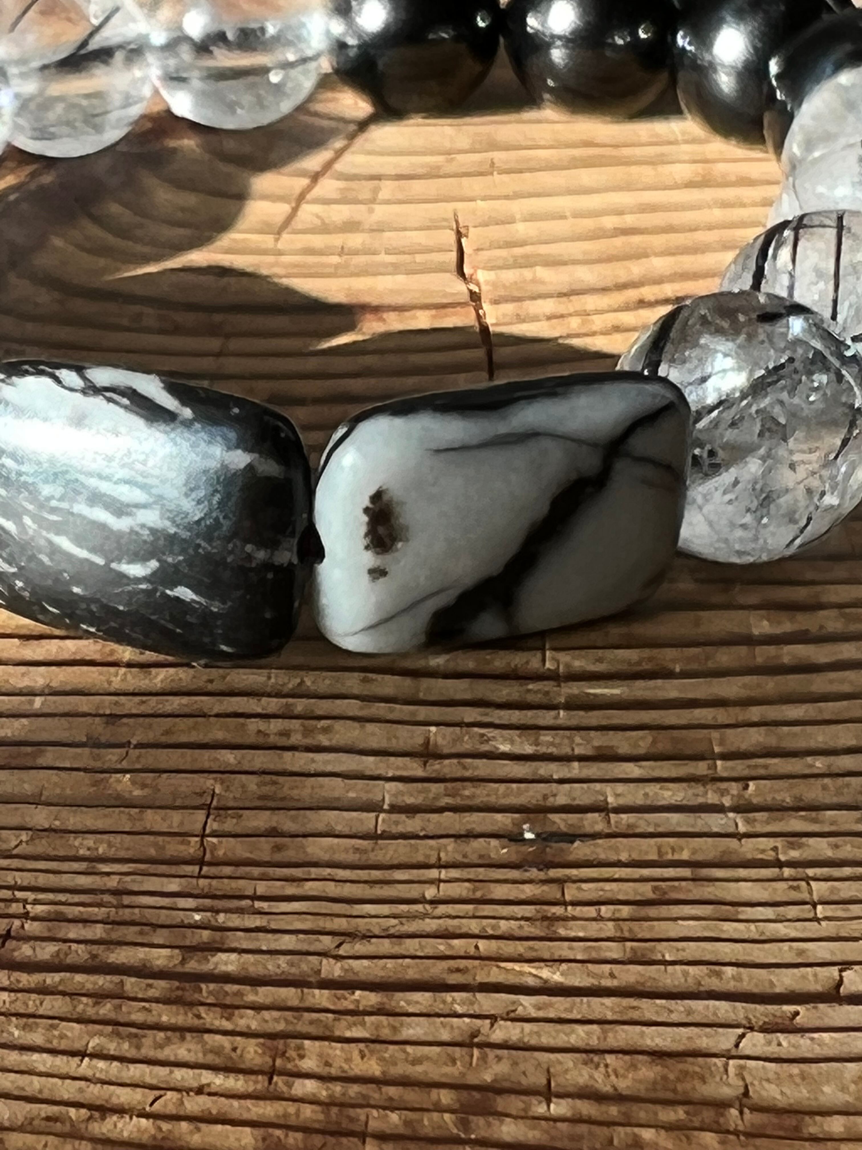 日陰に入りたいなら【アウトレット】ゼブラジャスパー&モリオン&クォーツインブラックルチル