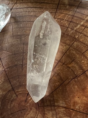 結晶の両端にとがった先端部(ファセット、錐面)を持つ水晶。